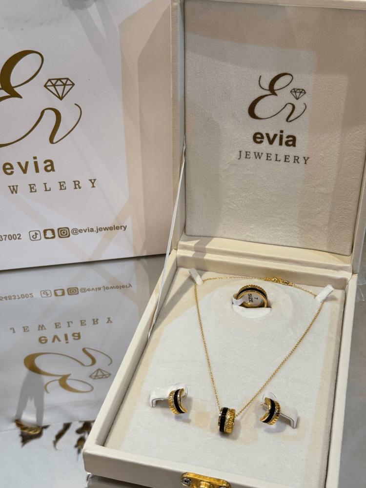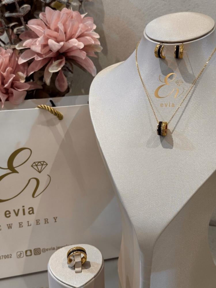 طقم بوشرون مستوحى من تصاميم العلامة الفاخرة Boucheron، يجمع بين التفاصيل الهندسية واللمعة الملكية. خيار مثالي لعاشقات الفخامة الفرنسية والتصاميم ذات الطابع المعماري الأنيق.